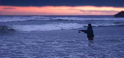 la playa, la corriente de entrada dejaba un ancho canal entre el banco y la